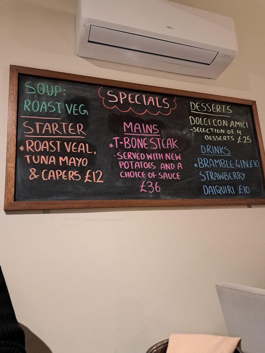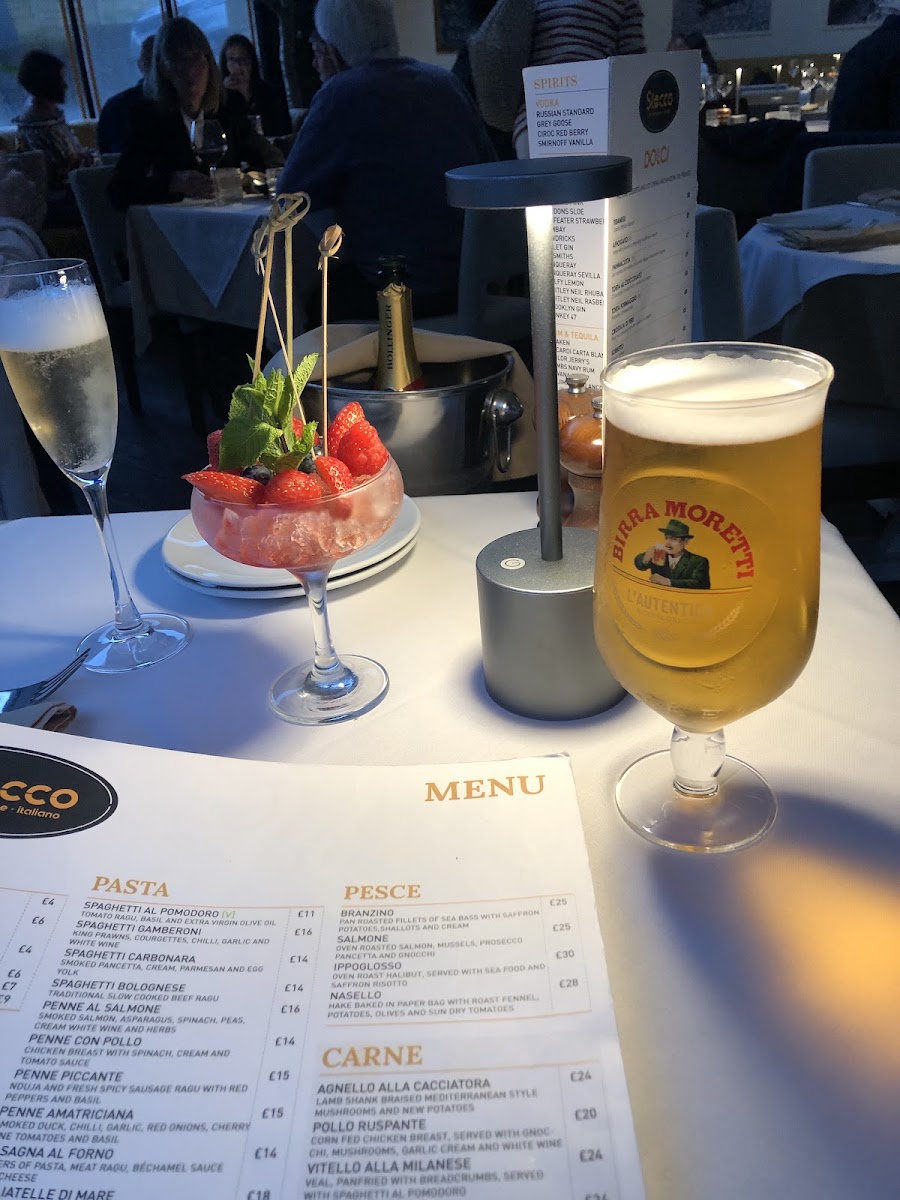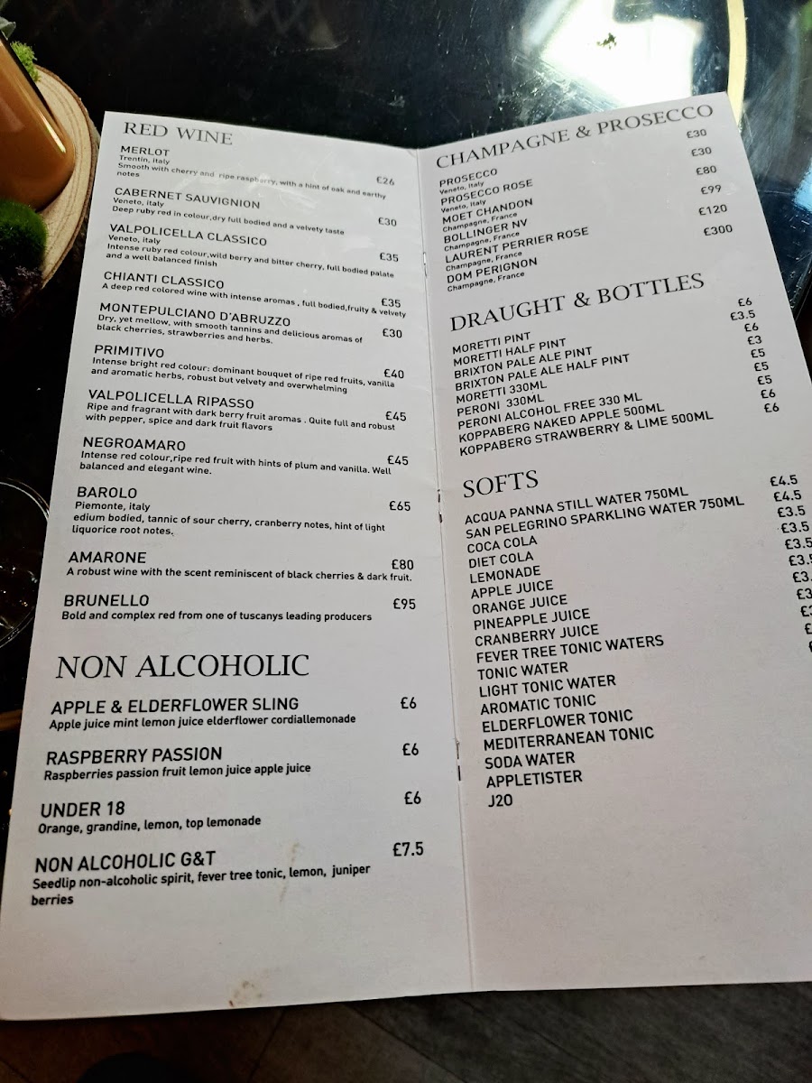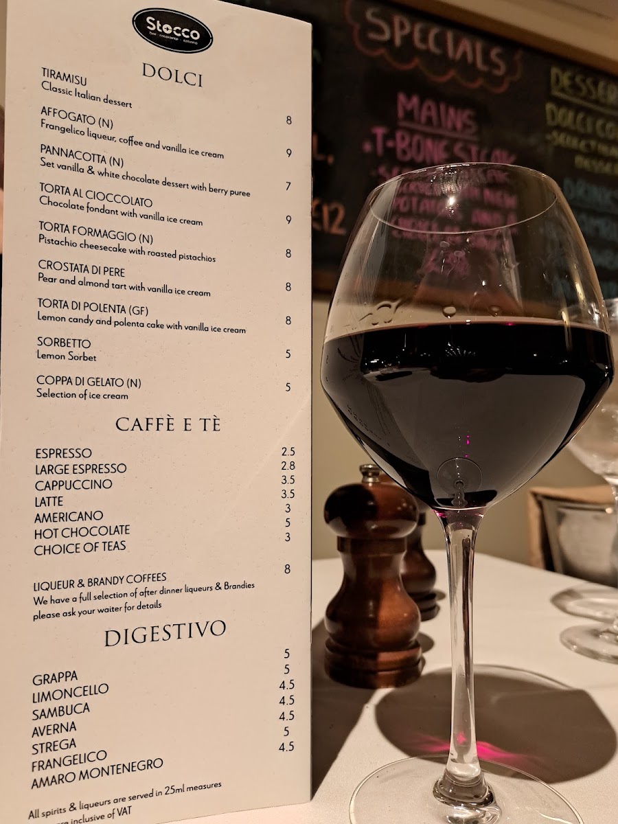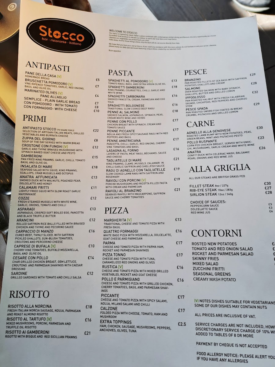 The menu at Stocco - Authentic Italian Restaurant and Bar offers a delightful range of Italian dishes, carefully crafted to bring authentic flavors to every bite. For starters, the Antipasti selection includes the classic Con Formaggio with cheese, the comforting Pane Della Casa, and the vibrant Bruschetta Pomodoro. For pasta lovers, the menu features classics like Spaghetti Al Pomodoro, Spaghetti Carbonara, and Penne Al Salmone, with prices starting from around £10.50. The Pesce section includes fresh options such as Branzino and Salmone, while meat enthusiasts can enjoy dishes like Agnello Alla Genovese and Pollo Ruspante. The restaurant also offers a tempting range of pizzas, including the ever-popular Margherita and Quattro Formaggi, along with a selection of delicious Risotto options like the Risotto Al Tartufo. Side dishes like Skinny Fries and Tomato and Red Onion Salad are perfect accompaniments to any meal. To finish, dessert lovers can indulge in Tiramisu or Panna Cotta, with a cup of Cappuccino or Americano to round off the experience. The drink menu features a range of wines, including Merlot and Chianti Classico, as well as soft drinks and non-alcoholic options such as Apple & Elderflower Sling. Whether you're in the mood for a casual meal or a more sophisticated dining experience, Stocco offers something for every taste.
